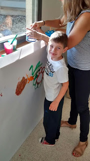 Durante la primera semana, realizamos un mural de expresión plástica con pintura,utilizando las manos y el pincel como forma de expresión artística. Dejaron volar su imaginación al son de música clásica lo que les sirvió para relajarse.¡Se lo pasaron genial! Para muestra estas fotos.